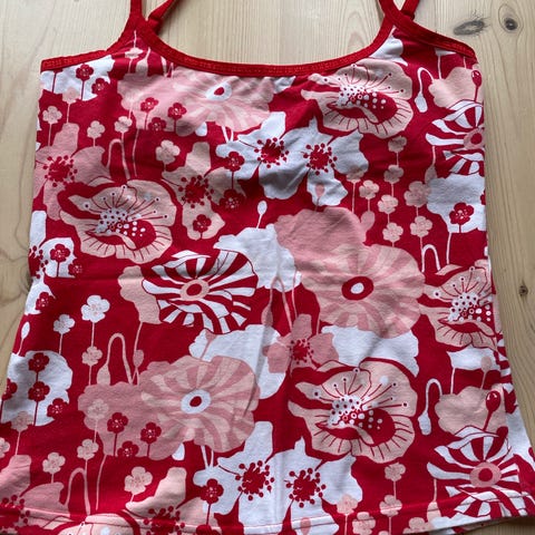 Kort sort sports top med gråt i siderne. 90% bomuld, 10% lycra. Farven er falmet en smule.