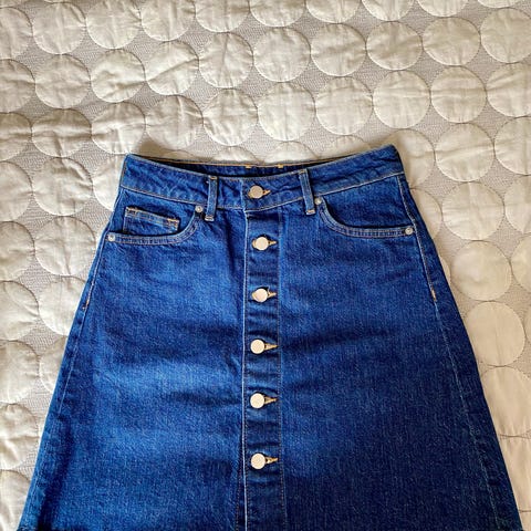Lang cowboy / denim nederdel fra H&M i str. 36