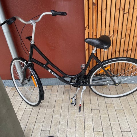 Glimrende cykel med gedigent udstyr. Cykelkurv, bagagebærer, fastmonteret for- og baglygte og ikke mindst luft i dækkene, så du kan cykle hjem herfra.