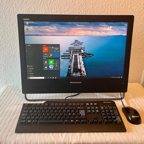 Rigtig fin renoveret All-in-one pc fra Lenovo. Pc og skærm samlet i en enhed, som man også kender fra Apple IMac. Maskinen har indbygget wifi så minimalt behov for ekstra kabler udover strømforsyning der naturligvis medfølger.