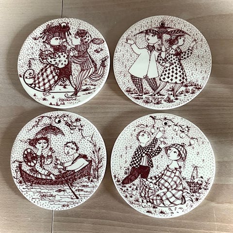 Morgen, middag og aften. Dia 18 cm. Pris pr stk 125,- eller samlet 300,-