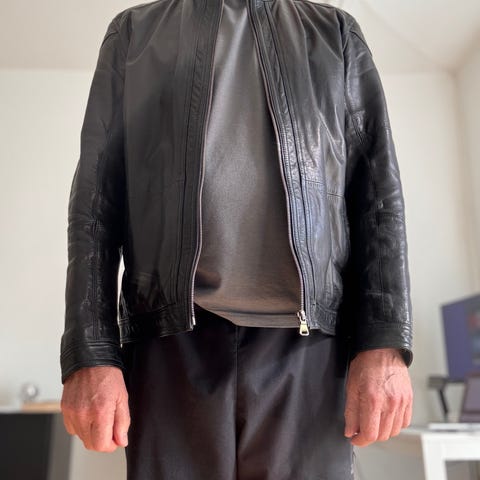 Skindjakke, str. XL, Hugo Boss, Sort jakke i blødt lammeskind, foret skal repareres eller skiftes, da det er gået i nakken og inderlomme - ellers pæn stand. Kan sendes med Dao.