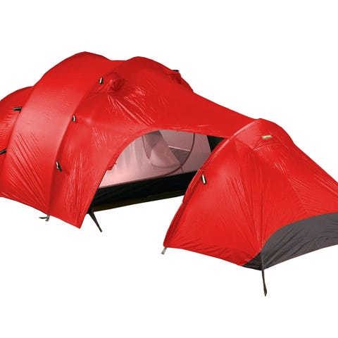 Tunneltelt. Ydertelt: 100% polyester. Indertelt: 100% polyamid. Bund: 100% polyamid.