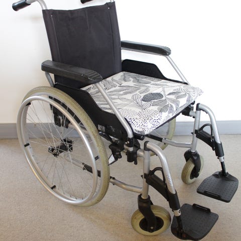 Sammenklappelig med kraftige gummihjul fortil samt aftagelige fodstøtter og sidepaneler.