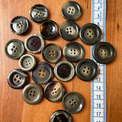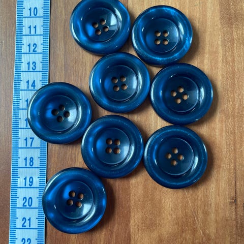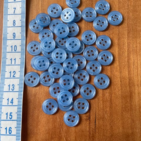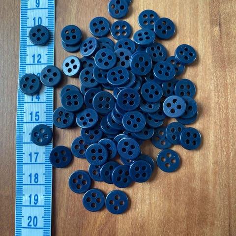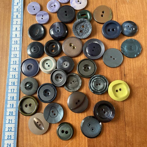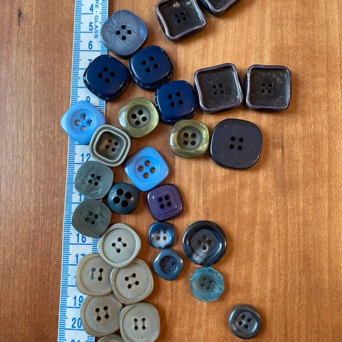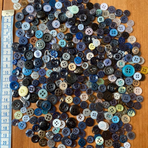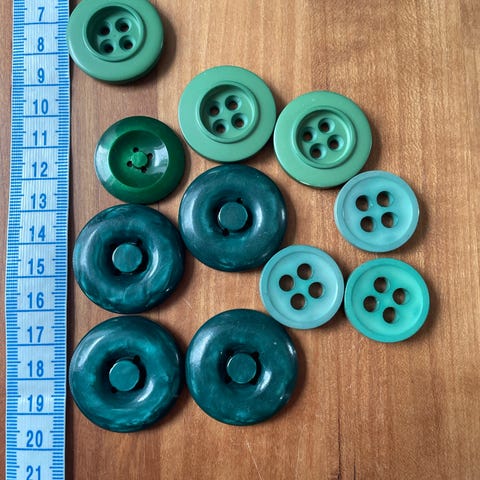 8 forskellige billeder med plastikknapper i blå og grønne nuancer