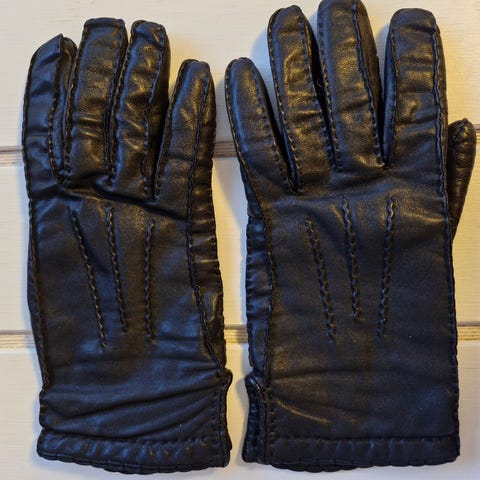 100% ægte læder, sorte handsker, kørehandsker, str. 7-7,5 (small/medium), længde: 21 cm, fin stand, vejer 76 gram.