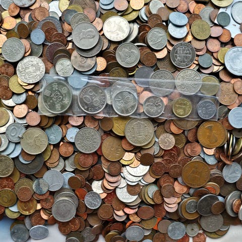 11 møntskuffer med filt. Inkl. div. mønter. Bla. Kronprins Frederiks og Kronprinsesse Marys bryllupsmønt.