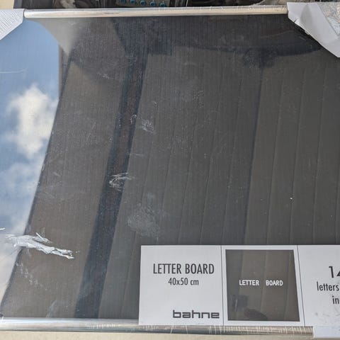 Super fin tavle i træ med alfabetet. Hænger på væggen i metaltråd bagpå.