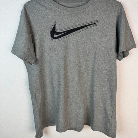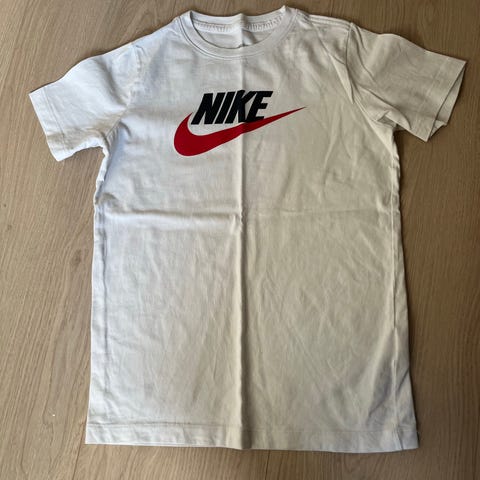 Fed T-shirt med logo foran. Størrelse: 137-147. Har lidt smuds/ plet under Nike tegnet (Den har nok været faldet på gulvet) som jeg tænker vil gå af i vask.