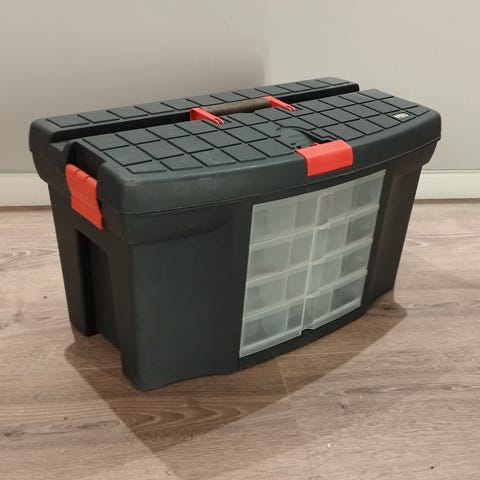 Praktisk og let at tage med i sommerhuset, bilen eller på rejsen. Har et ubetydeligt tryk i siden men lukker fint.