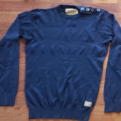 mørke blå striktrøje med dobbelt række knapper og sidelommer, næsten ikke brugt