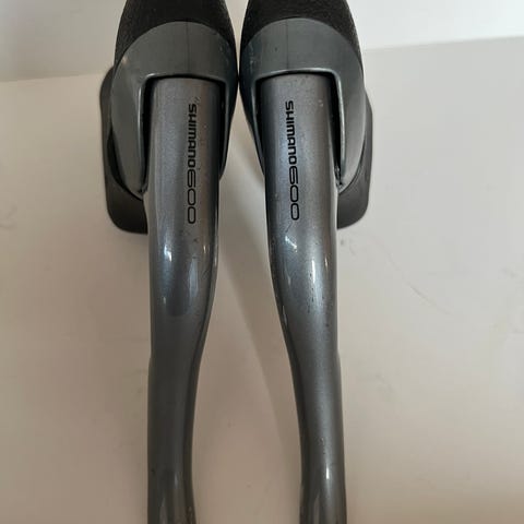 Pæn stand som vist på billederne. Perfekt mekanisk funktion, normale brugsspor og grebsgummi helt intakt Ig ikke klæbrigt, uden ridser og revner. Se også min annonce for tilsvarende Shimano 600 /6403 bremser. Kan sendes for + 50 kr. ved forudbetaling
