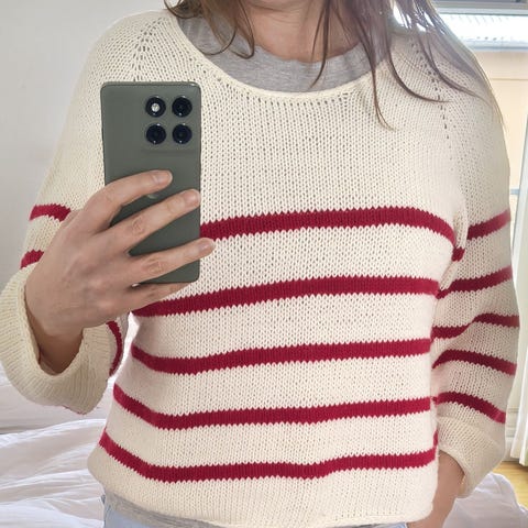 Strikket I Drops baby merino som består af 100% extra fine Merino uld