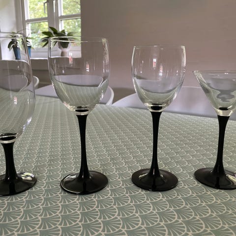 Domino Glas , 26 stk Hvidvin , 24 stk Rødvin, 11 stk Bourgogne , 4 stk cocktail, 7 stk Champane