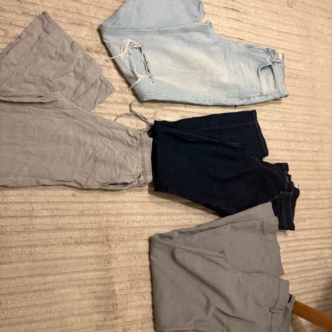 Har mange flotte bukser (også ruskind), shorts, leggings, sweatpants, nederdele, bluser, jakker, toppe, sportstøj, løbejakker, blazere, sko, støvler, kjoler, habitsæt mm.