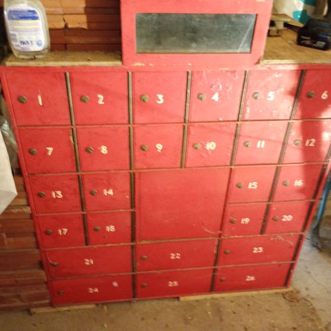 Anden arkitekt, Sætte kasse reol, Upcycling af gamle gulvbrædder fra læge boligen i Borum, står på fødder og væg montage, faset på fronten, olie behandling, en sætte kasse i stort format, ??
