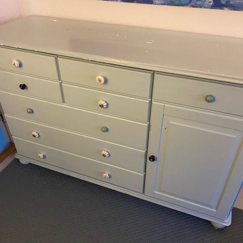 Overskab er ikke fast monteret, og kan udelades uden synlige spor i topplade. Møblet er 99 cm højt uden overdel.