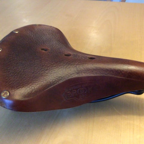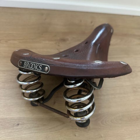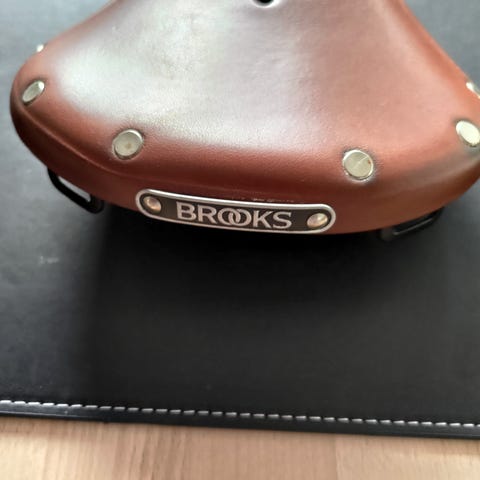Den ægte vare, BROOKS lædersaddel i rigtig fin stand med smuk patina. Jeg har haft den liggende i over 50 år og nu skal den videre. Vil være fantastisk til et vintage/retro projekt.
