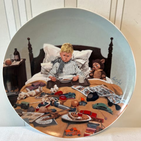 Denne er 1 ud af 6 platter jeg har fra en serie tegnet af den danske kunstner Kurt Ard.