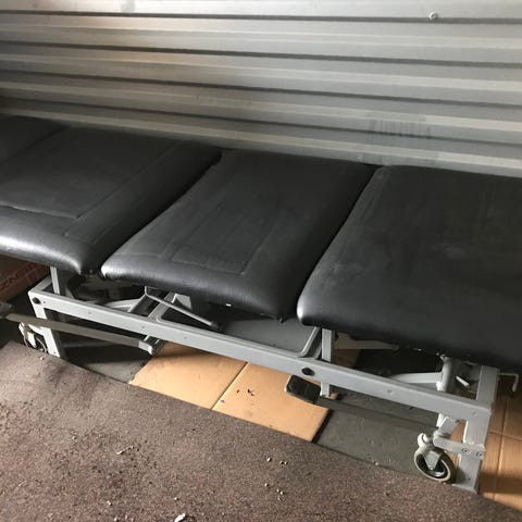 Vegoria behandlerbriks. God kvalitet. Let brugt. Meget fin. Combi. Justerbar højde. 180 lang. 60 cm bred. Rygstøtte kan hæves 72 cm længde. Chassi stål/hvidlakeret. Kunstlæder. Patientvægt 150 kg. Hjemmeside: www.vegoria.se. Skriver der: “Combi giver dig den bedste mulighed for at kombinere forskellige behandlinger og en god ergonomisk arbejdsstilling. Ansigtshullet har et behageligt design, og hynderne er yderst komfortable. Det justerbare ryglæn giver din patient en dejlig afslapning. Benhyndens længde giver behagelig støtte til hele benet. Højdejusteringen er den mest geniale på markedet, de 3 par ben gør bænken stabil uden at den hænger ned”.