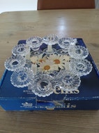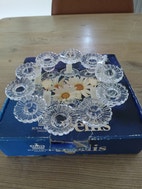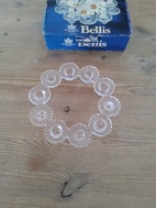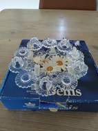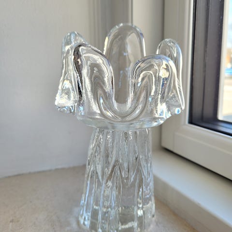 Royal Krona Sweden Bellis lysestage I glas. Designet af Kjell Blomberg. Stadig flot lysestage, uden skår eller revne, trods alder 45 år. Lidt brugsspord findes på kassen. Fragt pris er 44kr