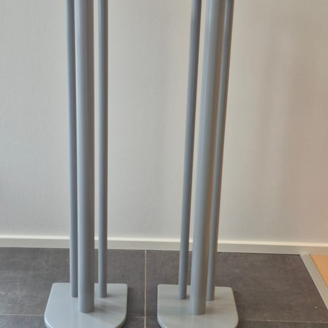 Pæne standere på 61 cm med glasplade i bud og top. Bundfladen måler 25x30 cm og toppen 20x25 cm.