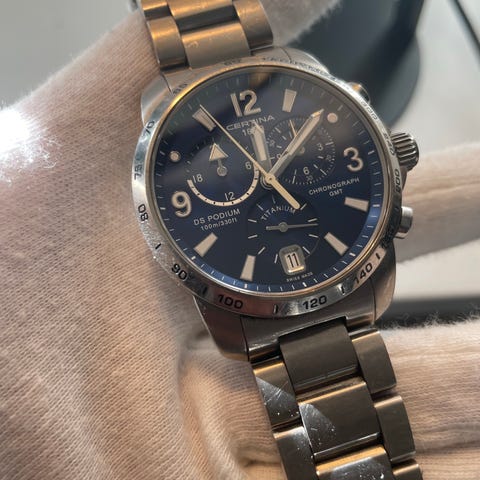 Jeg købte det her ur i et øjeblik af voksen fornuft. Tænkte, at nu skulle jeg endelig begynde at gå med ur som et ordentligt menneske. Men det blev mest liggende i skuffen. Det er brugt et par gange og ser stadig ud som nyt. Automatisk værk med 80 timers gangreserve – altså næsten tre dage uden optræk. Titaniumkassen og -remmen gør det så let, at man næsten glemmer, man har det på. Alligevel mærker man mekanismen arbejde – en lille påmindelse om, at der stadig findes præcision i verden. Metallet er varmt mod huden, hvilket føles lidt mærkeligt første gang – men på den gode måde. Æske følger naturligvis med. Kort sagt: Et ur, der fortjener mere opmærksomhed, end jeg åbenbart kan give det.