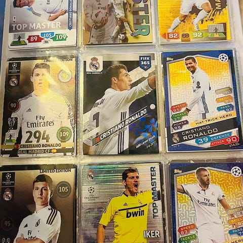 Rigtig mange fodboldkort 2011-2025 et par af kortene er ridset det vil nok tag et par timer at sortere men vis du gerne vil have en masse kort er det nok noget du vil have der er også mange sjælne kort fx Ronaldo messi og mbappe