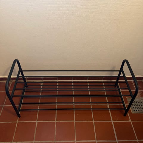 Jeg sælger dette vintage skostativ i postkasserødt lakeret metal 👞✨