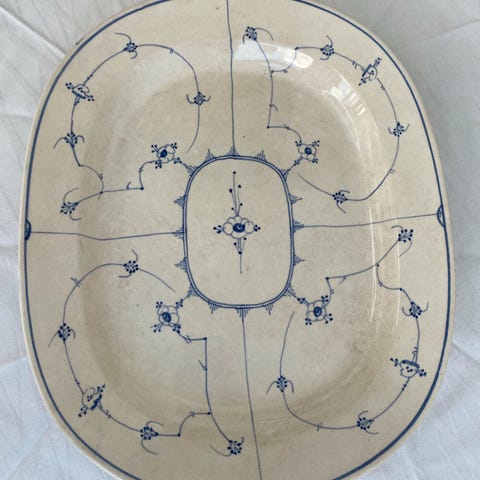 Stegefad musselmalet 37 x 29 cm. Finlandia Myott England. Staffordshire.