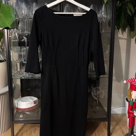 Lækker kjole, god at rejse med, krøller ikke. Måler ca 56 fra armhule til armhule og er ca 93 cm lang. Str 40. Røg og dyrefrit. Har også kjolen i str 42.