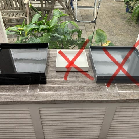 Oi Soi Oi lakbakke med håndtag i cremefarvet/knækket hvid. 110x24x5 cm. Fremstillet i MDF træ med 13-15 lag lak. Helt som ny.