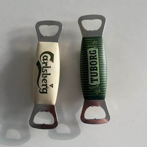 Oplukker med reklame for "Tuborg Genuine Import Beer" med teksten "By appointment to The Royal Danish Court" og "The Royal Swedish Court".