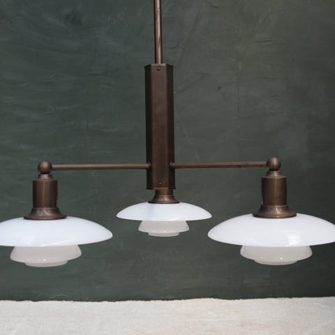 poul henningsen bruneret stammekrone. den har været i brug en måned i 1996, og så blev den pakket ned i den originale emballage igen. billederne er fra nettet, for jeg vil ikke samle den for et par fotos. den kan selvfølgelig besigtiges ved køb.