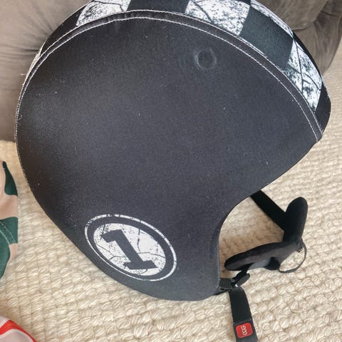 Hjelmen er aldrig blevet tabt, den er blevet passet godt på og har ikke været med i styrt.