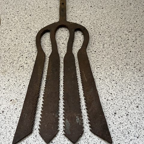 Sæt bestående af fire vintage Lyster/Ålejern i forskellige størrelser og former. Fremstillet af sort jern med robuste håndtag. Egnet til dekorative formål i sommerhus eller kolonihave eller som samlerobjekter. Kom evt med et seriøst bud. Prisen er for alle 4.