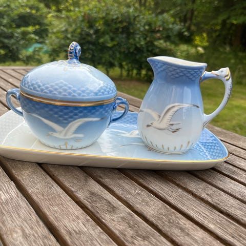 Mågestel sukkerskål og flødekande