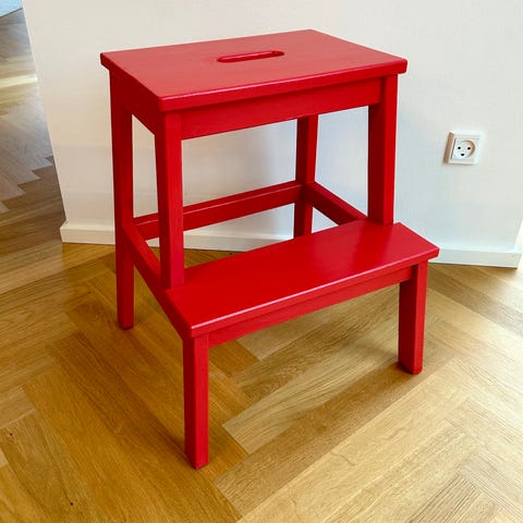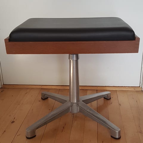 Skammelen er lavet af massiv palisander, med sæde af cognac farvet skind.