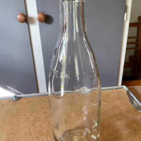 2 gamle 1 liters mælkeglasflasker.