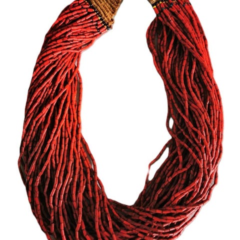 Antik glas og koralhalskæde