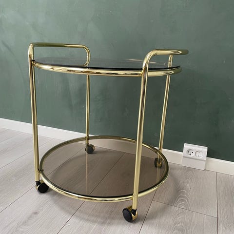 Vintage barvogn, 1970’erne. Forkromet metal og glas.