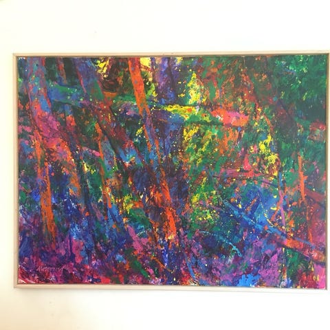 Meget smukt oliemaleri af Anders Moseholm. “Convient - Compatible - Consience” fra 2006. Bredde 200 cm, højde 150 cm. Skal afhentes i Charlottenlund.