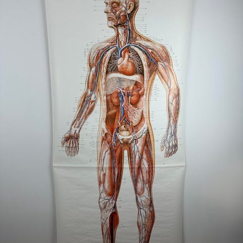 Fin gammelt tysk undervisningkort over muskelvæv, i meget fin stand
