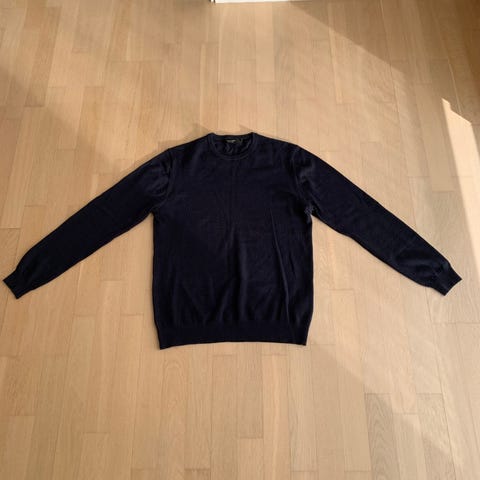 Lækker blød bluse med brystlomme. Mørk kant i hals og ved brystlomme. Str. L / 52/54. V-udskæring. Lang i kroppen. Dejlig blød. Langærmet. Varm og fin og intakt stand.