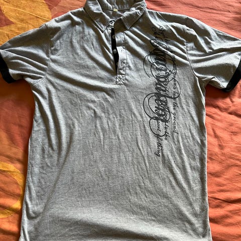 Lækker blød t.shirt fra SMOG, slimfit, str. L. Med rund hals og 4 knapper ved bryst. I fin og intakt stand.
