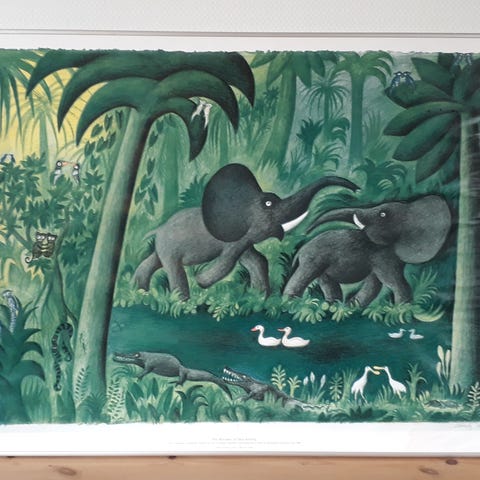 Plakaten fremstår som “nærmest ny” med ganske få håndteringsspor.