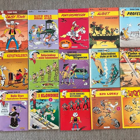 Sælger en solid samling Lucky Luke-albums af Morris & Goscinny – udgivet i 1980’erne og 90’erne.