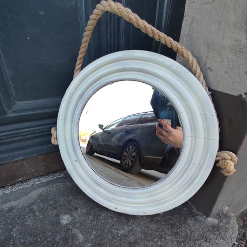 Dette spejl mangler vippe stykket da det har hængt på væggen billede kvaliteten varierer fra morgen til aften det måler ai 30 højt og 25 bredt se også mine andre annoncer