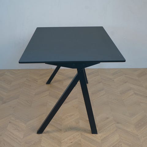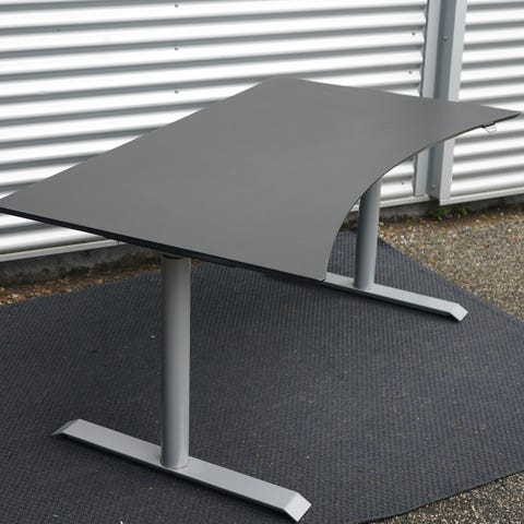 Robust, alsidig og udøvet arbejdsstation. Crown højdejusterbart skrivebord er en tung arbejdsstation med flere formål, der er egnet til brug som et skrivebord eller et mødebord. Med et innovativt dobbelt motorsystem på en robust firebens ramme, bygget til at stå sin prøve. Bordplade i lækker sort linoleum.