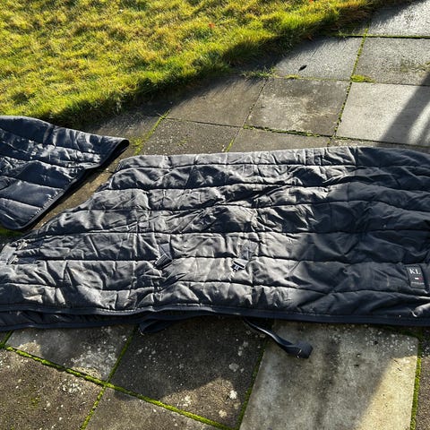 Så flot stalddækken i mørk flaskegrøn fra Eskadron 840 Denier og 150 g. Fuldstændigt som nyt - brugt ganske få gange. Er også interesseret i at bytte til et større magen til i str. XXL - hvis standen er ligeså god :-)